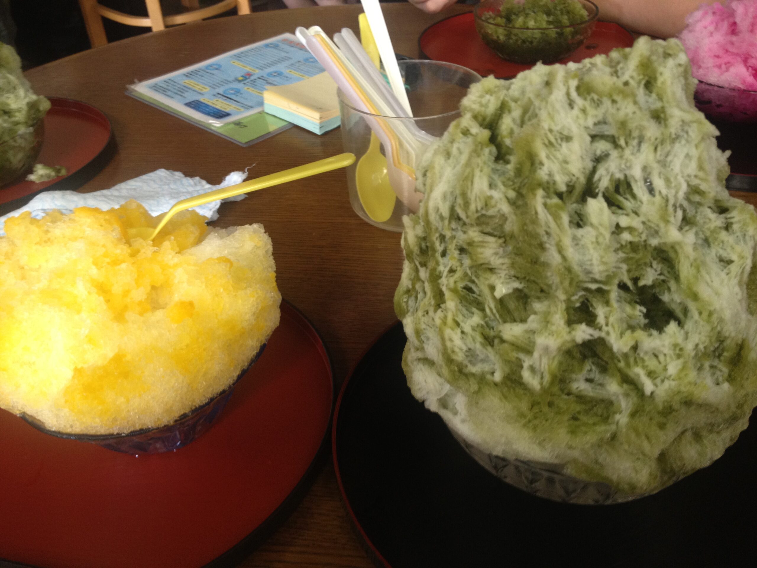 本当は、一つ食べ終えてから二つ目を注文したいのですが、炎天下で並んでいる人を思うと、それも出来ずに同時注文し、並行して食べました。