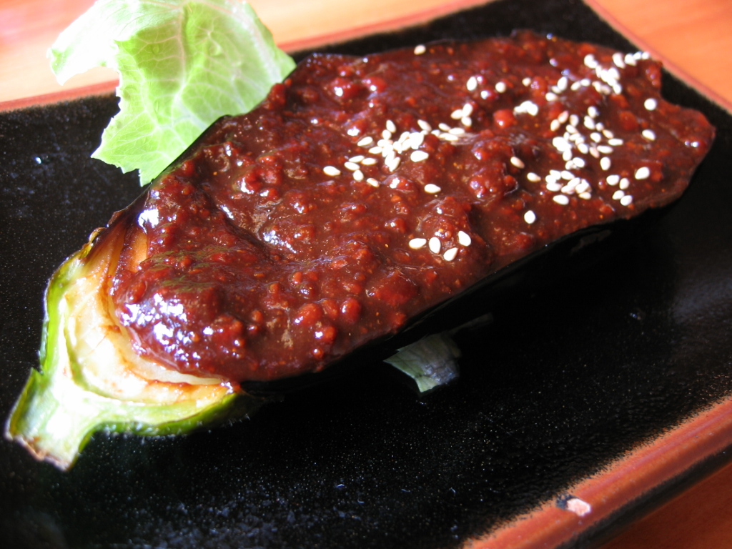 大きなナスが縦に半分に切られた状態で出てきて、結構ボリューム満点でした。