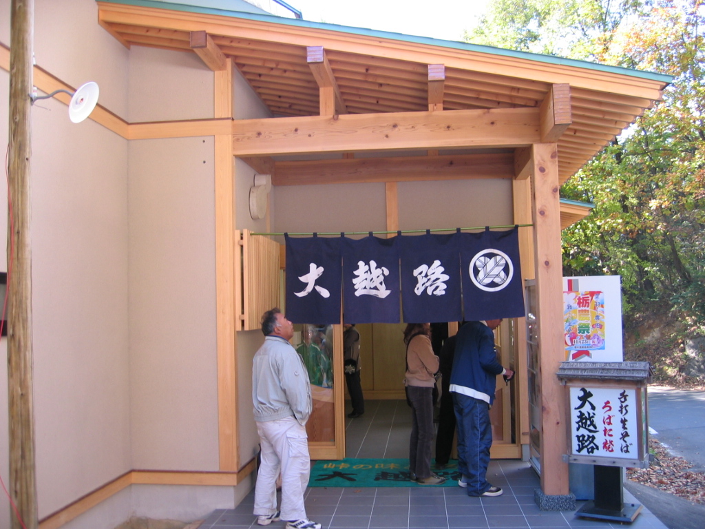 実は栃木インターを過ぎた辺りで行き先を粟野町(現:鹿沼市)の大越路峠にあるお店にしようと決めたのでした。そのお店の名は峠の名前そのままで『大越路』と言います。ここは行列が凄いお店なので、11時半には入ろうと思ってました。ちょうどその時間に着いたので、待たずにすみました。