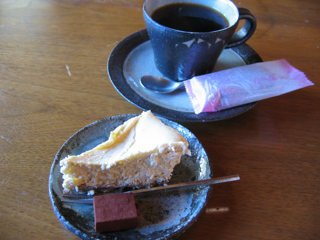 私が選んだケーキはレアチーズ。見た目通りの手作りで、カットした面などを見ると思わず微笑んでしまいますが、ケーキもコーヒーも美味しくいただきました。
