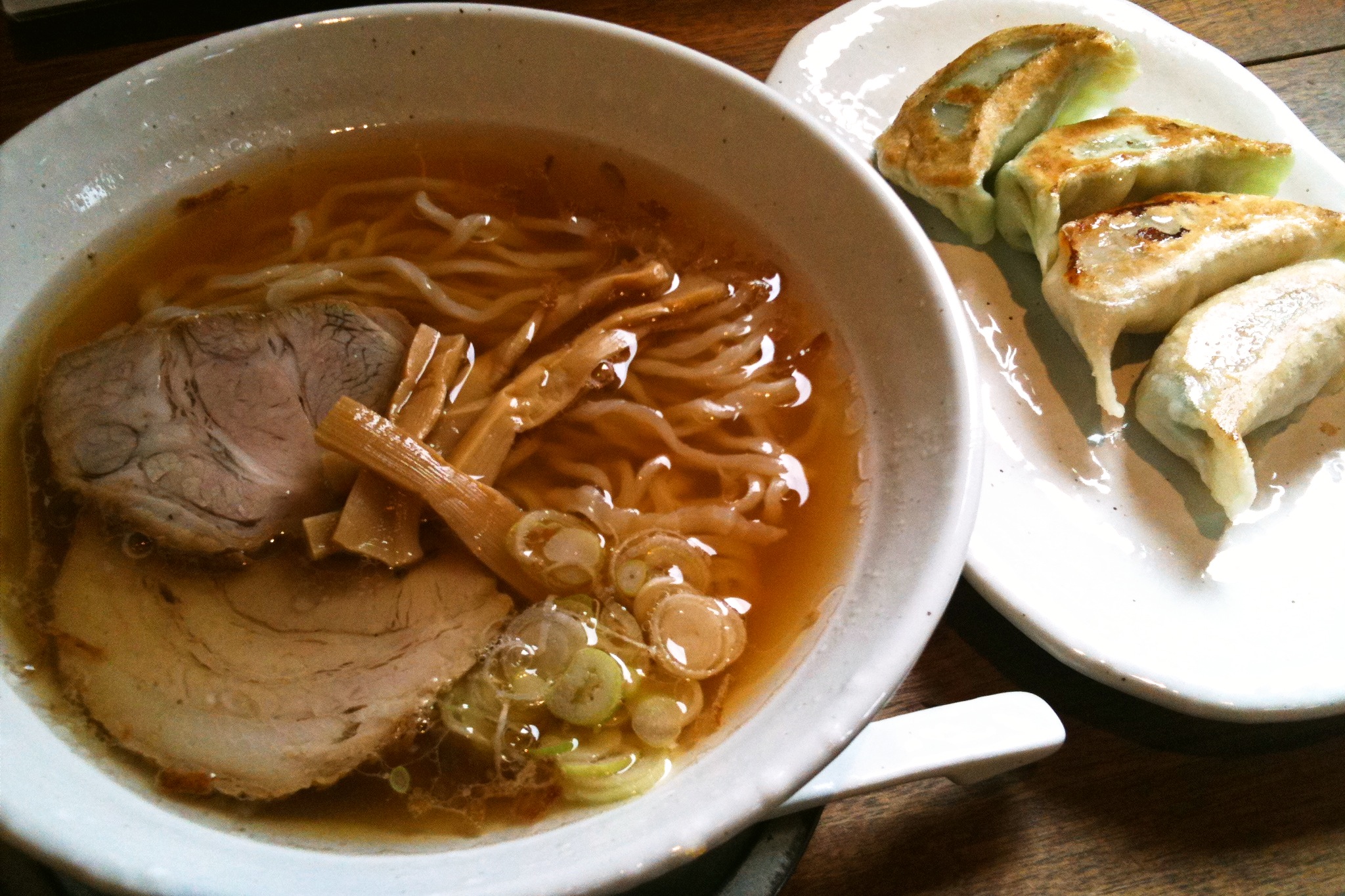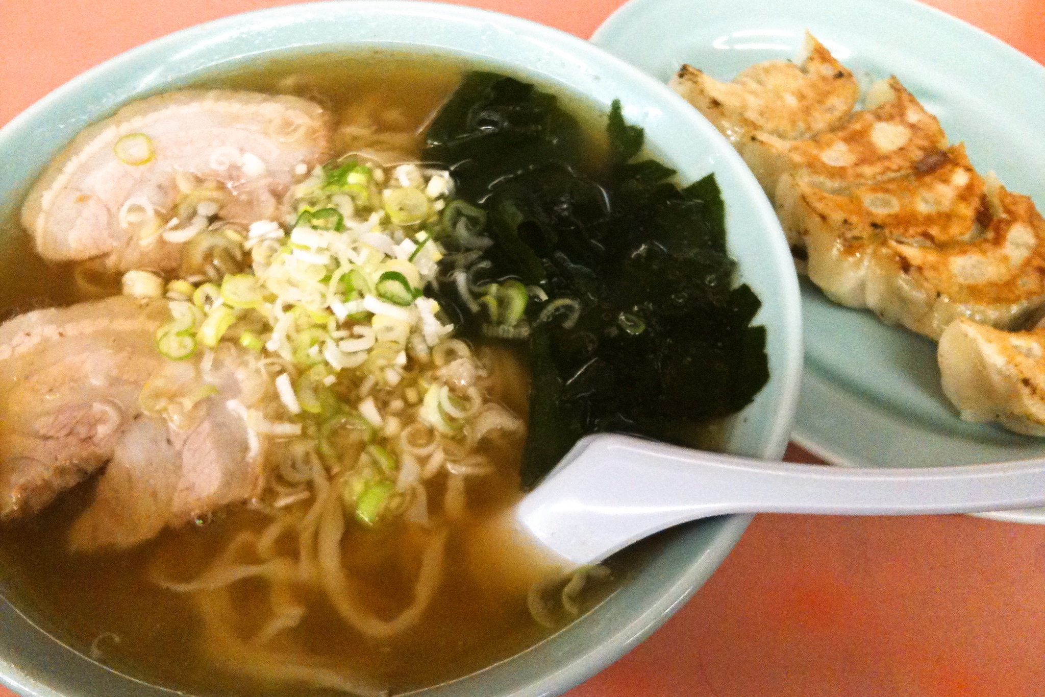私は醤油ラーメンとW餃子(肉餃子と紫蘇餃子のセット)を注文。
